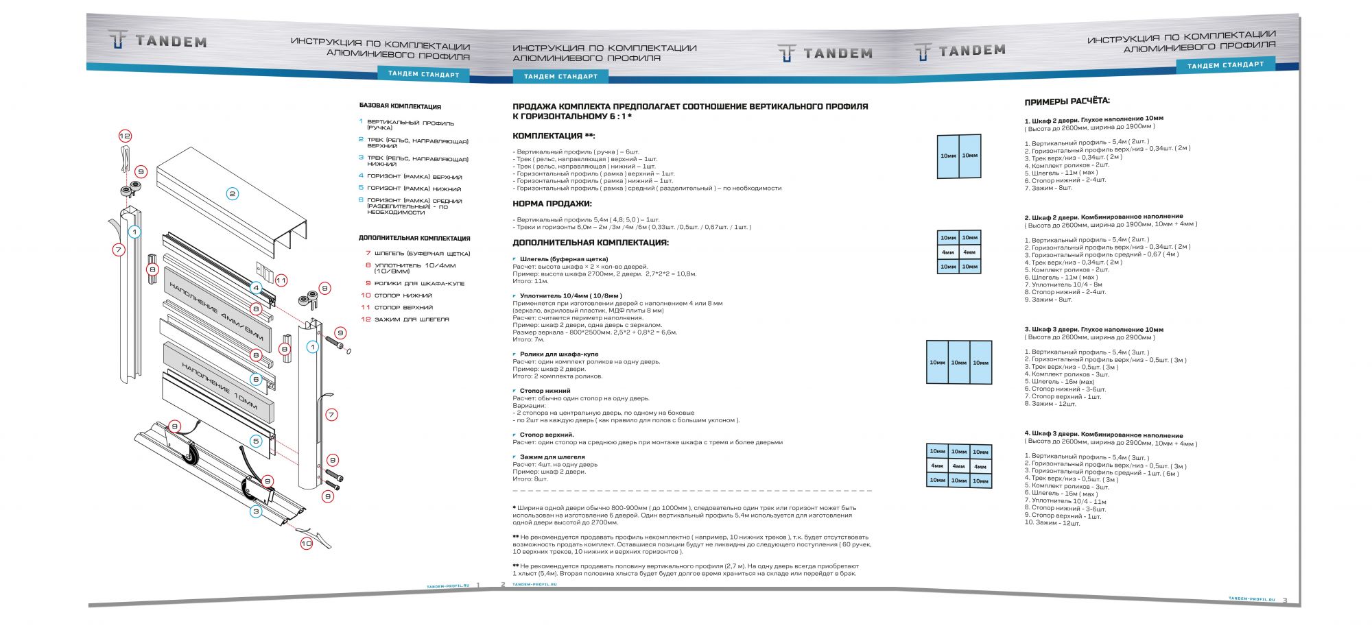 В этой инструкции описывается какое количество профиля и какие комплектующие необходимы для изготовления шкафа, перечислена базовая и дополнительная комплектация, а также приведены примеры расчета.