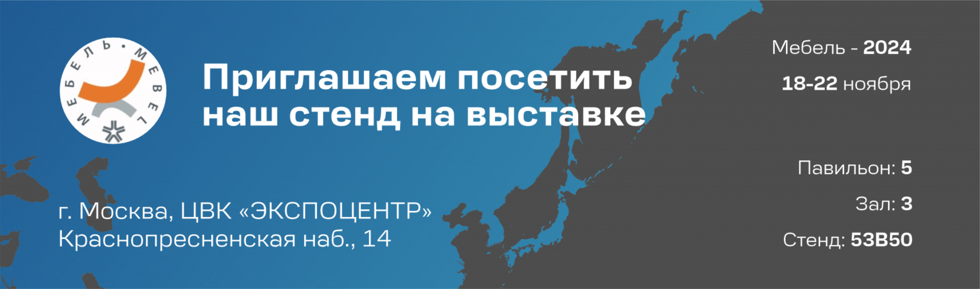 Приглашаем вас посетить наш стенд на 35-й Международной выставке «Мебель, фурнитура и обивочные материалы», которая пройдет в период с 18 по 22 ноября в «ЦВК Экспоцентр», г. Москва.Для посетителей Экспоцентра вход бесплатный. Получить билет вы можете на официальном сайте выставки по ссылке.